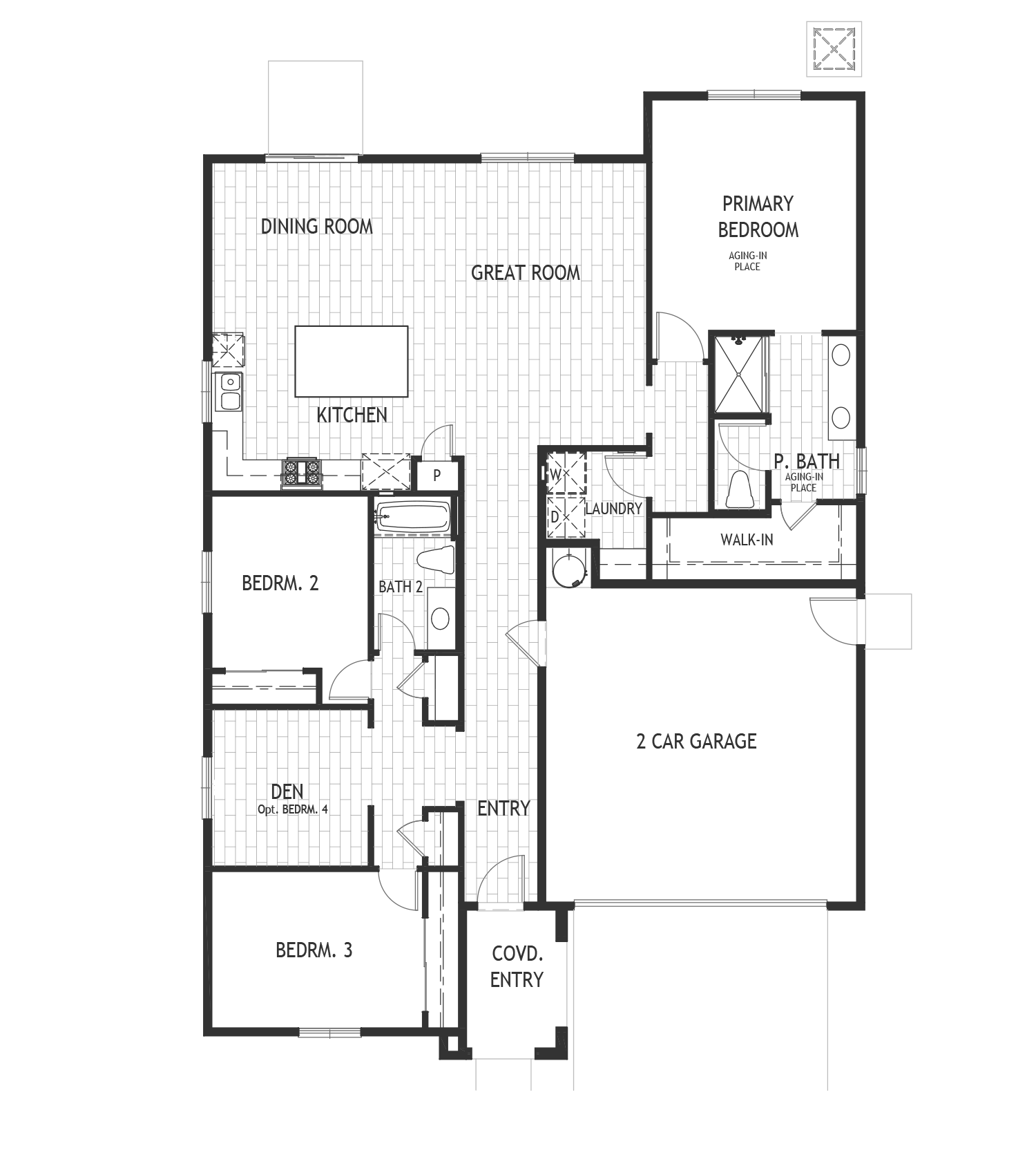 Welcome space, versatility, and cool vibes. This single-story home features a welcoming entry, versatile den space, kitchen w/island & pantry, great room, dining room, 3 bedrooms, 2 baths, laundry room & 2-car garage.