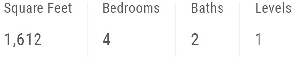 Residence 1612: 1,612 SF, 4 Bdrms, 2 Baths, 1 Level