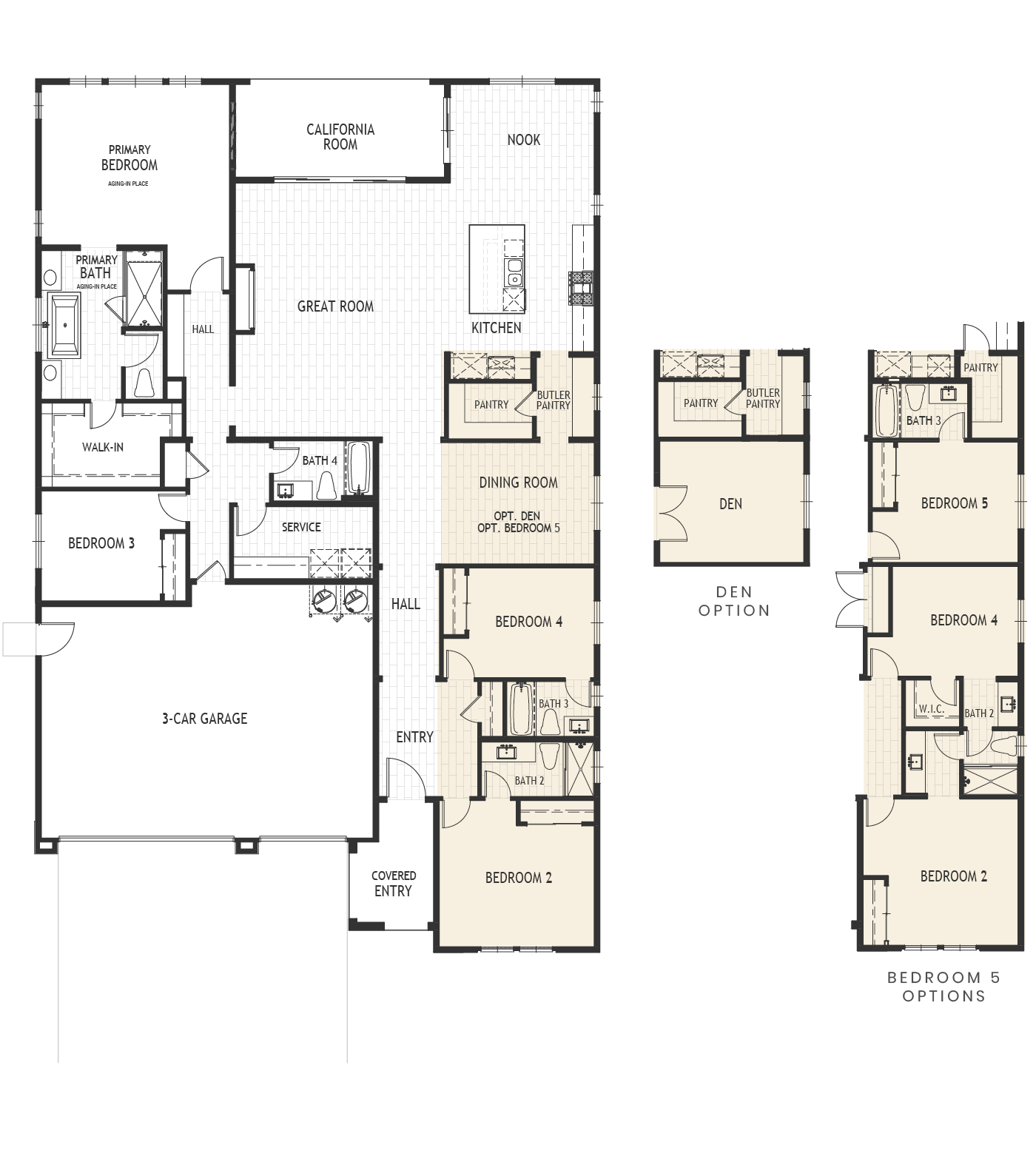 4 Bedrooms, Den, 4 Baths, Opt. Bedroom 5, Opt. Den